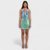 עשה הצהרה נועזת עם שמלת המיני המדהימה שלנו! השמלה עוצבה כדי למשוך את כל העיניים בכל הזדמנות חגיגית. עם מעבר צבעים מבריק מכחול לירוק, היא מושלמת לכל מי שאוהבת לנצוץ.