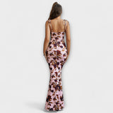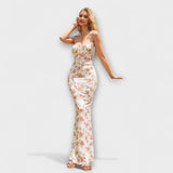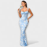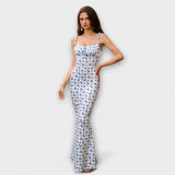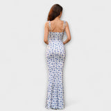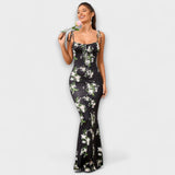 תליה - שמלת פרום עם הדפס פרחים ורצועות כתף קשורות