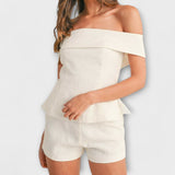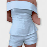 אוליביה - סט דו חלקי מבד כותנה ולינה לבן